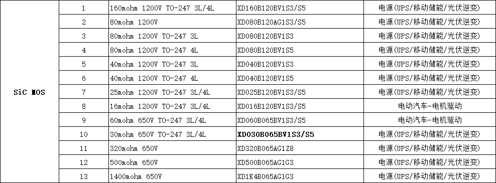 XD030B065BV1S3/S5 芯達茂 SiC MOS 30mohm 650V TO-247 3L/4L