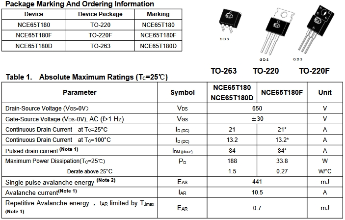 NCE65T180F這一系列器件采用先進的溝槽柵極超結技術和設計,提供具有低柵極電荷的卓越ROS(ON)。這種超結MOSFET符合工業AC-DCSMPS在PFC、AC/DC電源轉換和工業電源應用方面的要求。