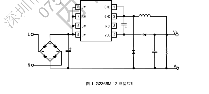 G2366X-12 是一款高集成度、高性能、低待機功耗的開關電源芯片,適用于非隔離開關電源應用。