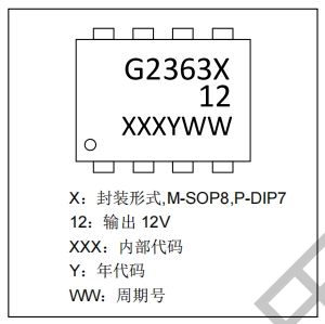 G2363X-12芯片的絲印信息是識(shí)別和追溯芯片生產(chǎn)批次的重要依據(jù)。絲印通常包含型號(hào)、封裝形式、年代碼和周期號(hào)等信息。例如,型號(hào)G2363M-12表示該芯片采用SOP8封裝,而G2363P-12則表示采用DIP7封裝。年代碼則標(biāo)識(shí)了芯片的生產(chǎn)年份,從2013年到2038年分別用字母A到Z表示。這些信息對(duì)于質(zhì)量控制和產(chǎn)品追溯至關(guān)重要。