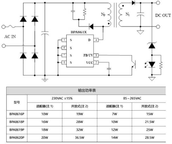 在輸出規(guī)格上,BPA861X 提供了 12V、1A(12W)的穩(wěn)定輸出,負(fù)載調(diào)整率和線調(diào)整率均小于 1%,輸出電壓紋波 VPP 小于 100mV,這些參數(shù)指標(biāo)確保了電源輸出的高質(zhì)量和穩(wěn)定性,能夠?yàn)榧译娫O(shè)備的各個(gè)部件提供可靠的電力支持。同時(shí),BPA861X 的封裝形式為 DIP-7,這種封裝具有良好的散熱性能和易于安裝的特點(diǎn),能夠滿足大家電電源對(duì)散熱和空間布局的要求。