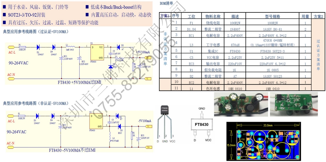 SOT23-3/TO-92封裝,低成本Buck/Buck-boost結(jié)構(gòu),內(nèi)置高壓?jiǎn)?dòng),啟動(dòng)快,動(dòng)態(tài)快具有過壓、欠壓、過流、過溫、短路等保護(hù)功能。用于水壺、風(fēng)扇、飯煲、門鈴等。