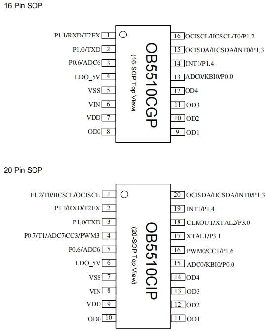 OB5510 系列芯片包括 OB5510CGP(SOP16 封裝)和 OB5510CIP(SOP20 封裝),均由國內知名半導體企業昂寶電子精心打造。該系列芯片專為衛浴吊頂和煙機等家電應用量身定制,具備強大的功能與出色的性能表現,能夠滿足不同場景下的多樣化控制需求。