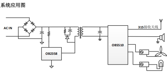 OB5510 系列芯片的高壓模擬單元是其一大亮點,輸入電壓范圍為 7.5V~12V,集成 5VLDO,輸出電壓 5V ±2%@25°C,最大輸出電流可達 200mA。此外,芯片還集成了 5 個開漏端口,具有 80mA 灌電流能力,并內建續流二極管。這些特性使得 OB5510 能夠直接驅動繼電器或可控硅等高壓大電流器件,簡化了系統設計,降低了成本,同時提高了系統的可靠性和穩定性。