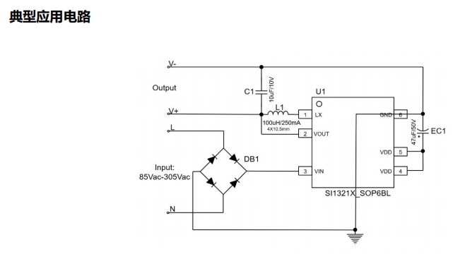 SI1321X系列芯片設(shè)計(jì)注重緊湊性與易用性,兼容CD32/43貼片電感和0410色環(huán)電感,無(wú)需額外的π型濾波或安規(guī)電容即可滿(mǎn)足EMI標(biāo)準(zhǔn),大大簡(jiǎn)化了電路設(shè)計(jì)。此外,輸入端免去了高壓電解電容的使用,進(jìn)一步降低了成本和體積,使得該芯片在空間受限的應(yīng)用場(chǎng)景中更具優(yōu)勢(shì)。