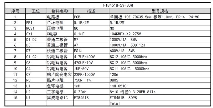 FT8451B的物料清單簡潔明了,主要包括以下幾個關鍵元件: