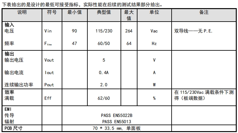 FT8451B的電源規格設計充分考慮了小家電輔助電源的實際需求。其輸入電壓范圍為90~264Vac,能夠適應不同國家和地區的電網電壓,具有很強的通用性。頻率范圍為47~64Hz,覆蓋了常見的電網頻率,進一步增強了其適用性。在輸出方面,FT8451B能夠提供穩定的5V電壓和0.4A的輸出電流,連續輸出功率可達2.0W,完全能夠滿足小家電輔助電源的功率需求。