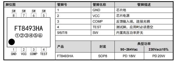 FT8493HA輝芒微SOP8封裝PD20W次邊反饋開關電源轉換器芯片
