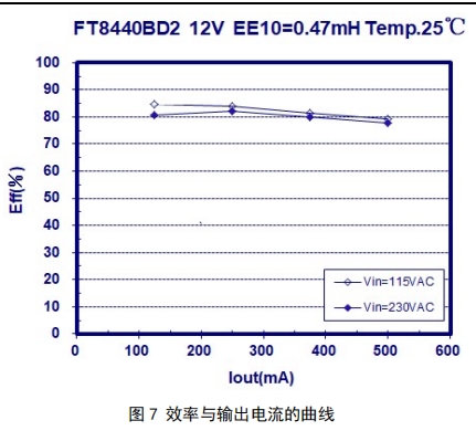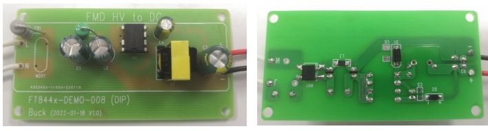 FT8443BD2 采用緊湊的 DIP7 封裝,內置 630V 高壓 MOS 管,外圍元件數(shù)量少,大大降低了設計成本和 PCB 面積。