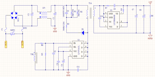 芯茂微18W方案原理圖LP3716CDH+LP25R060S對比其他方案