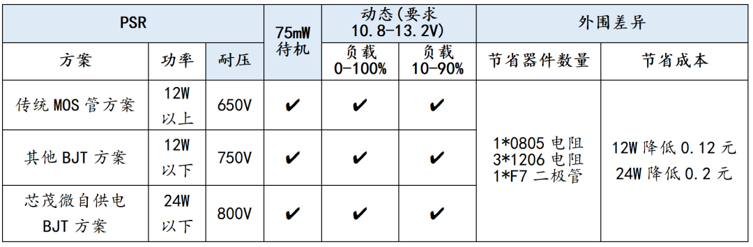 下面附上芯茂微新型自供電BJT方案產品型號列表: