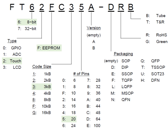 FT62FC6X型號命名規則