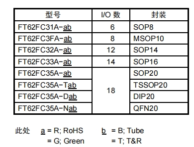 FT62FC6X系列的基礎型號為“FT62FC”,其中: