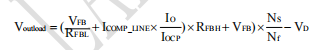 其中,RFBH是FB外接的上偏電阻,RFBL是FB外接的下偏電阻,ICOMP_LINE是滿載經過FB上偏電阻的輸出線補償電流,Nf是輔助繞組匝數,VFB是基準電壓(典型值1.0V),VD為輸出續流管壓降,IO為帶載電流,IOCP為輸出恒流電流。
