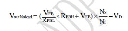 LPK8727通過電阻采樣反激電壓,電阻分壓后得到的電壓與內部基準比較形成閉環后,來恒定輸出電壓Vout。輕載輸出電壓計算公式如下: