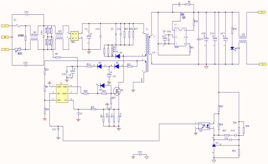 LP8773:作為主控芯片,LP8773內部集成了PWM控制器、高壓啟動電路、過壓保護、過流保護等多種功能,確保了電源的穩定運行。