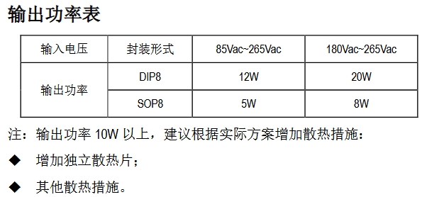 ? DIP8 12 W(寬壓)/20 W(高壓),SOP8 5 W/8 W