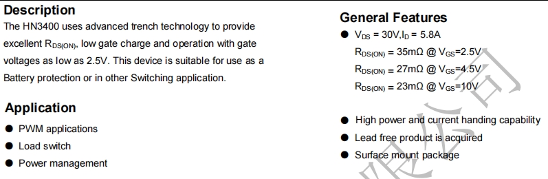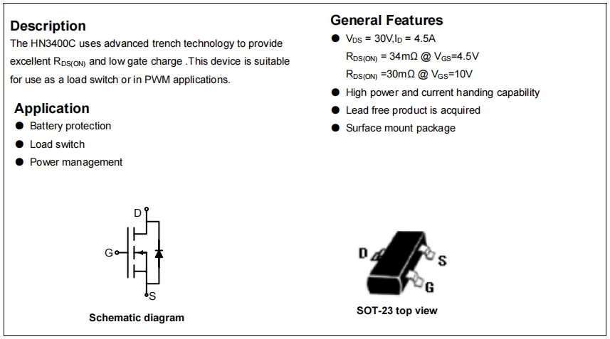 HN3400:低壓驅(qū)動最友好(2.5 V 即可 35 mΩ),適合單節(jié)鋰電池保護。