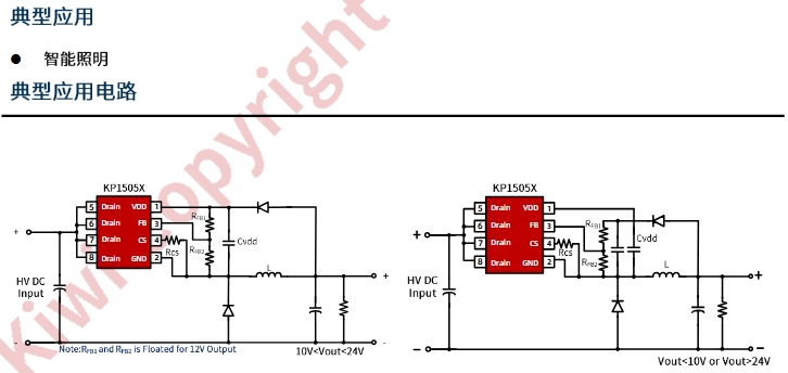 KP15052SPA5 Ω12 V (FB懸空)350 mA6-8 W吸頂燈 / 筒燈輔光