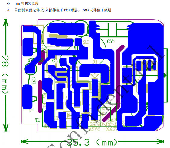 PCB布局:單面板雙元件,36 mm × 35 mm