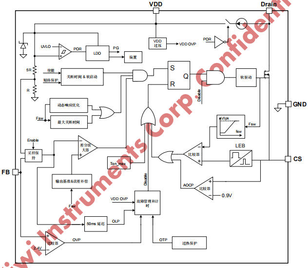 • 集成650V高壓MOSFET與啟動電路:極大簡化了外圍電路設計,提升了系統的浪涌耐受能力,適用于AC 85V~265V全電壓輸入場合。