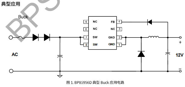 BP85956D集成VCC電容電機驅動BUCK電源芯片(12V300mA應用電路)