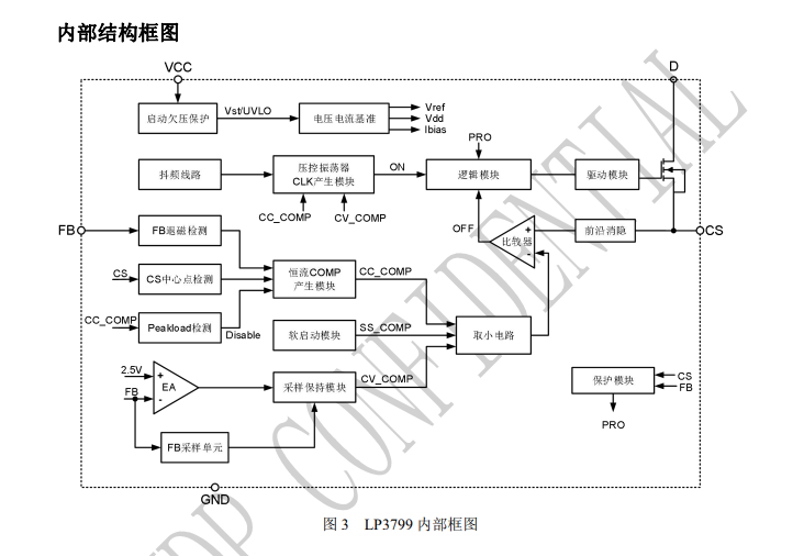 LP3799FBC 內(nèi)部集成大于 650V 高壓功率管,采用特有的檢測(cè)方式和算法,系統(tǒng)可以工作在恒壓和恒流兩種狀態(tài)。