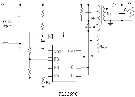 PL3369C 同時(shí)具有多種保護(hù)功能:逐周期峰值電流檢測(cè)、VDD 欠壓/過(guò)壓保護(hù)、輸出過(guò)壓保護(hù)、輸出短路保護(hù)和過(guò)溫保護(hù)等。