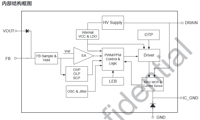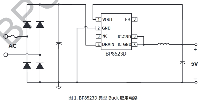 BP8523D 是一款高性能、高集成度、低待機(jī)功耗的開(kāi)關(guān)電源驅(qū)動(dòng)芯片,適用于全電壓 85~265VAC 輸入的 Buck、Buck-Boost 變換器拓?fù)鋺?yīng)用。 BP8523D 內(nèi)部集成了 650V 高壓 MOSFET、高壓?jiǎn)?dòng)和自供電電路、電流采樣電路、電壓反饋電路以及續(xù)流二極管!采用先進(jìn)的控制技術(shù),無(wú)需外部 VCC 電容和環(huán)路補(bǔ)償即可實(shí)現(xiàn)優(yōu)異的恒壓輸出特性,極大地減少外圍器件數(shù)量,節(jié)省系統(tǒng)成本和體積,同時(shí)提高可靠性。