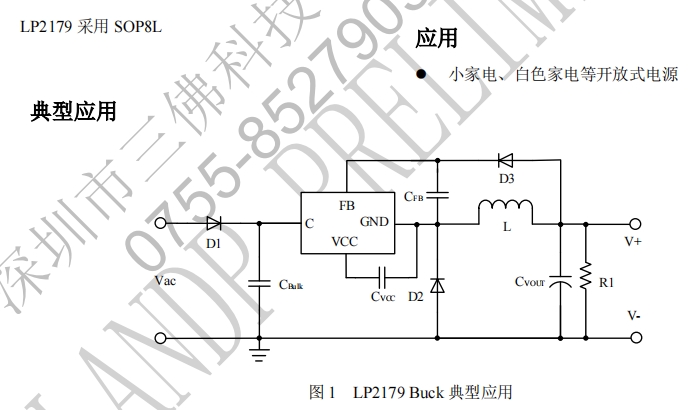 LP2178是一款高效率、高精度的非隔離降壓開關電源恒壓控制驅動芯片。它適用于85VAC至265VAC全范圍輸入電壓,尤其適用于小家電、白色家電等電源的驅動。LP2178內部集成高壓功率管,并采用恒壓控制模式,系統可工作于CCM和DCM模式。它還具有多重保護功能,包括VCC鉗位/欠壓保護,輸出短路保護、電感過電流保護及過溫保護等。