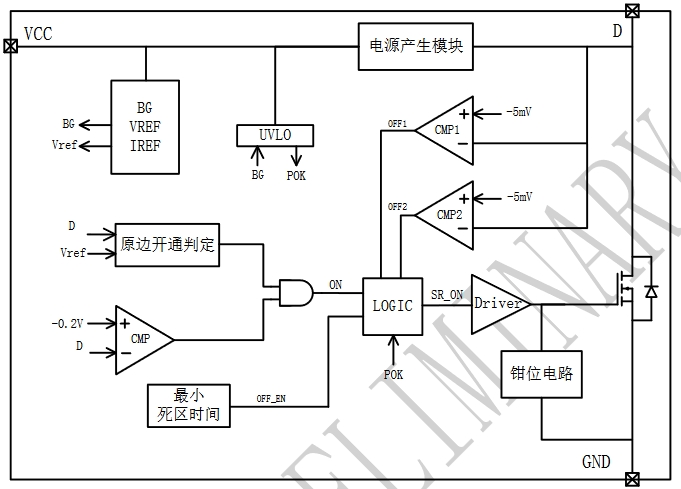 LP10R100S是由芯茂微電子推出的一款適用于AC-DC同步整流應(yīng)用的芯片,特別適用于正激和反激系統(tǒng)。這款芯片支持多種工作模式,包括DCM(斷續(xù)導(dǎo)通模式)、BCM(邊界導(dǎo)通模式)、QR(準(zhǔn)諧振模式)和CCM(連續(xù)導(dǎo)通模式)。LP10R100S內(nèi)部框架圖如下: