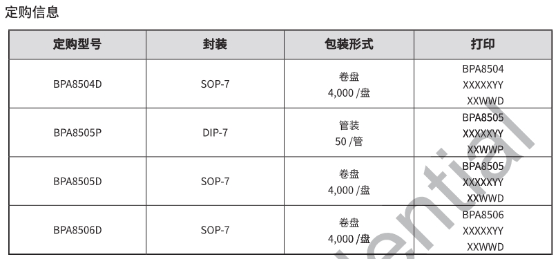 BPA8506D系列芯片的技術規格如下: