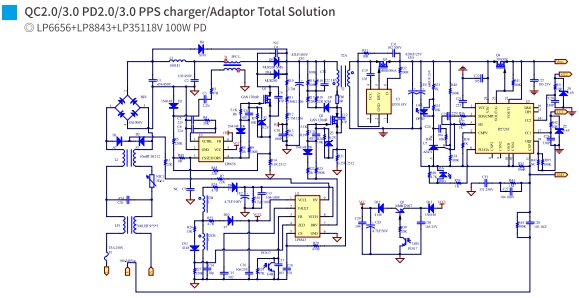 高效率:LP6656和LP8843的組合,使得整個(gè)快充方案在轉(zhuǎn)換過程中損耗極小,提高了整體的能效。