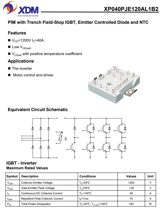 XP040PJE120AL1B2 芯達(dá)茂 國產(chǎn)IGBT 功率模塊 40A 1200V