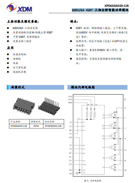 XP06G60AS0-CJPL 芯達茂 國產IGBT 三相全橋智能功率模塊