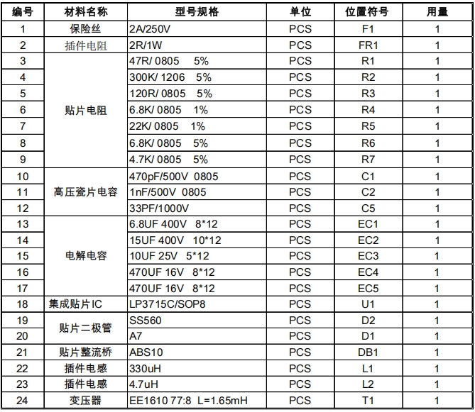 LP3715C:作為PWM控制器,負責調節輸出電壓和電流。